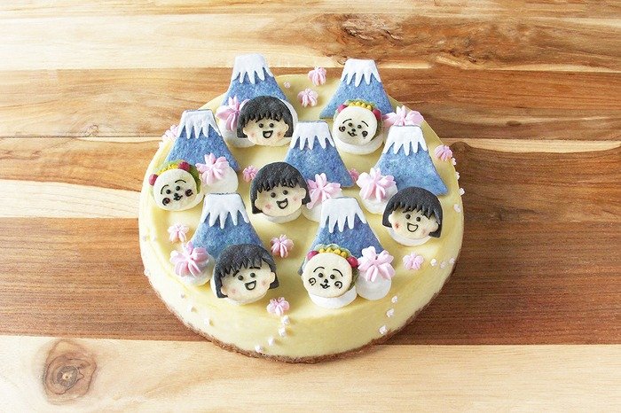 「Baked cheese cake コジコジがやってきたの巻/1カット(ドリンクセット)1,380円(税抜)」は、ふたりの出会いを祝うべイクドチーズケーキ。クッキーは、富士山+(まるちゃんorコジコジ)がついてくる。どちらがついてくるかはお楽しみ。