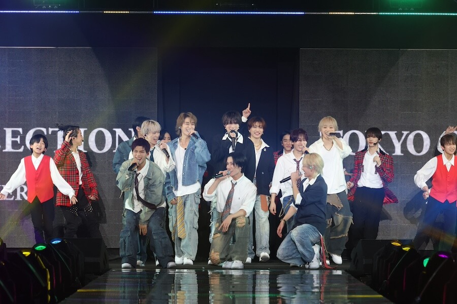 自己紹介をした後、「Supernova」を披露。クールな楽曲の中に高音ボイスが冴え、あどけなさと可愛らしさが入り混じるパフォーマンス。そして楽曲は「ブラザービート」、ラストの楽曲「NOT ENOUGH」へ。総勢37人が一列に並び、一糸乱れず踊る姿は迫力満点。肩を組んで仲良く歌う場面も。客席からは大きな歓声が上がり、終始ボルテージ最高潮のステージとなった。